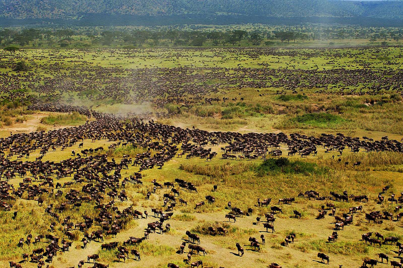 After an early breakfast, depart towards the most famous National park in the World, the Serengeti. The driving itself, although long, is spectacular. You will drive up the crater highlands, making a quick stop at the rim for an out of this world view of Ngorongoro Crater. This will be an unforgettable moment for anyone seeing it for the first time. As you progress well into the Serengeti, you will see why the name means, in local language, “endless plains”. The park has 6,900 sq. mile (18,000 sq. km) and for most of it, the plains will stretch to the horizon defying your senses and perception of distances. It is the home of the Great Migration and to 2 million wildebeests, hundreds of thousands of zebras and all kinds of antelopes including the abundant impalas and Thomson’s gazelles. As for Big Cats and large predators, it’s the place of choice to look out for lions, cheetahs, leopards, hyenas, with many television scenes like the famous river crossings having been filmed in this park. Smaller animals like foxes, mongoose, honey badgers, jackals, monkeys, baboons, rock hyrax and african hares, together with more than 500 species of birds, also inhabit this park.